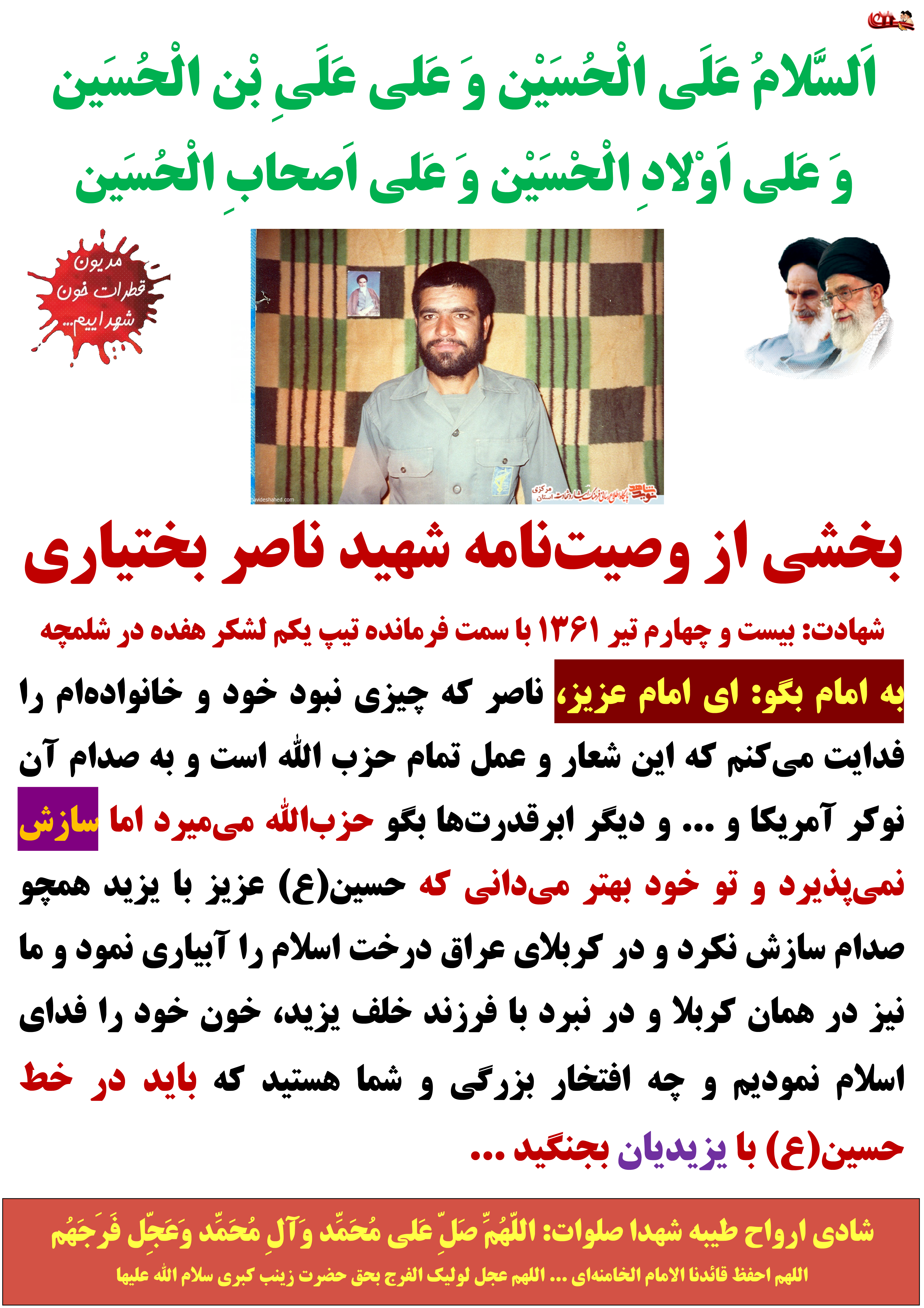 بخشی از وصیتنامه شهید ناصر بختیاری