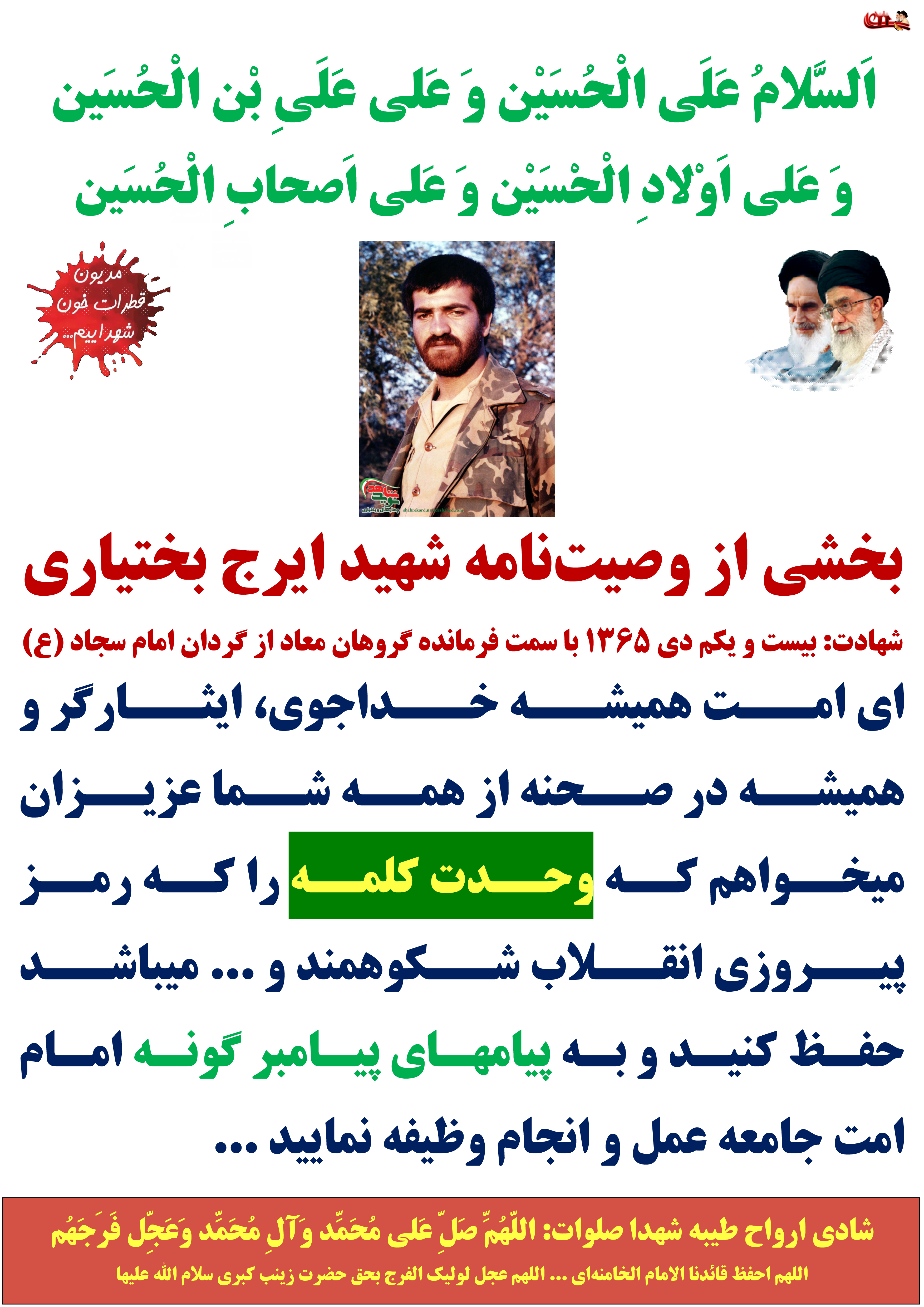 بخشی از وصیتنامه شهید ایرج بختیاری