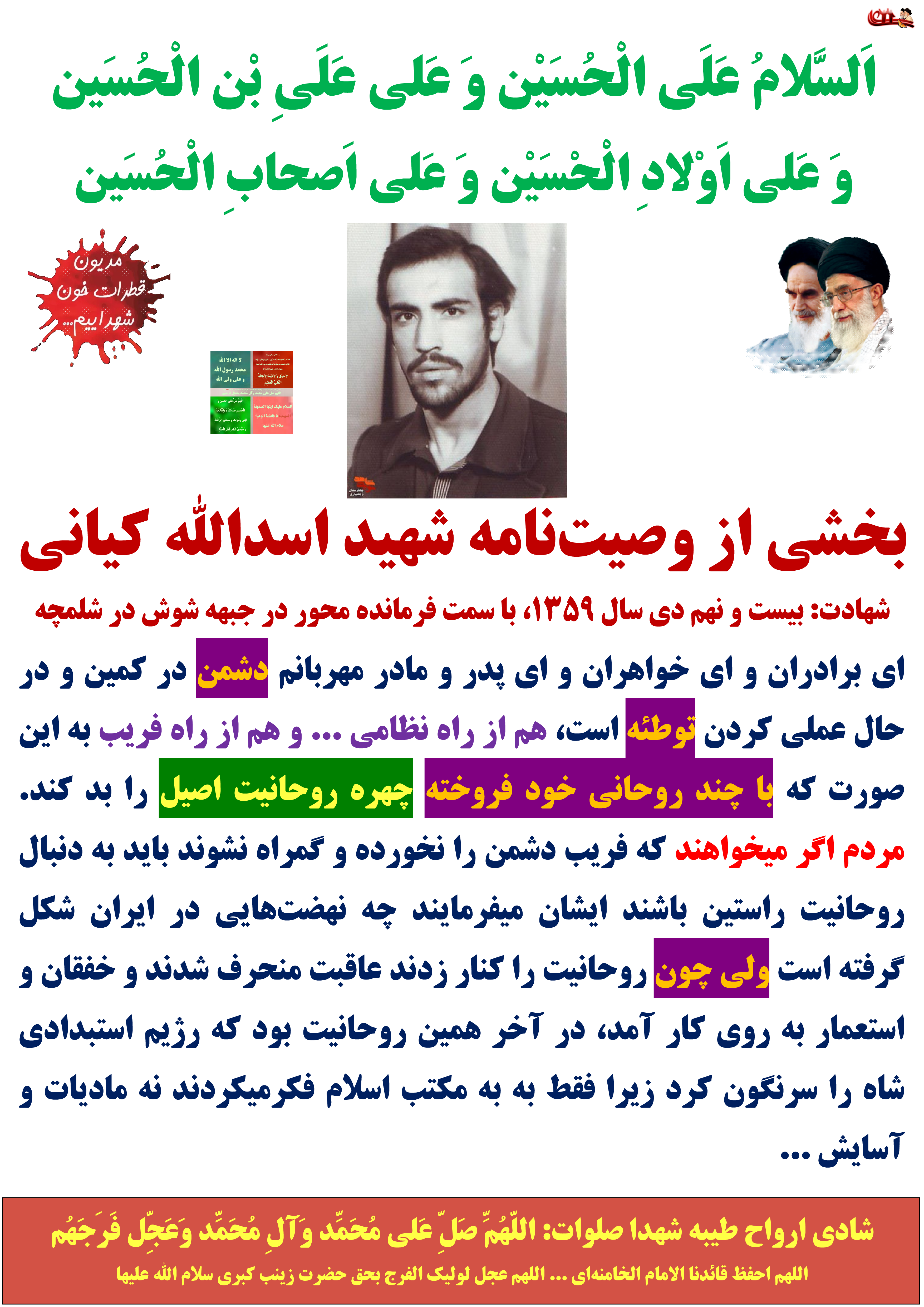 بخشی از وصیتنامه شهید اسدالله کیانی