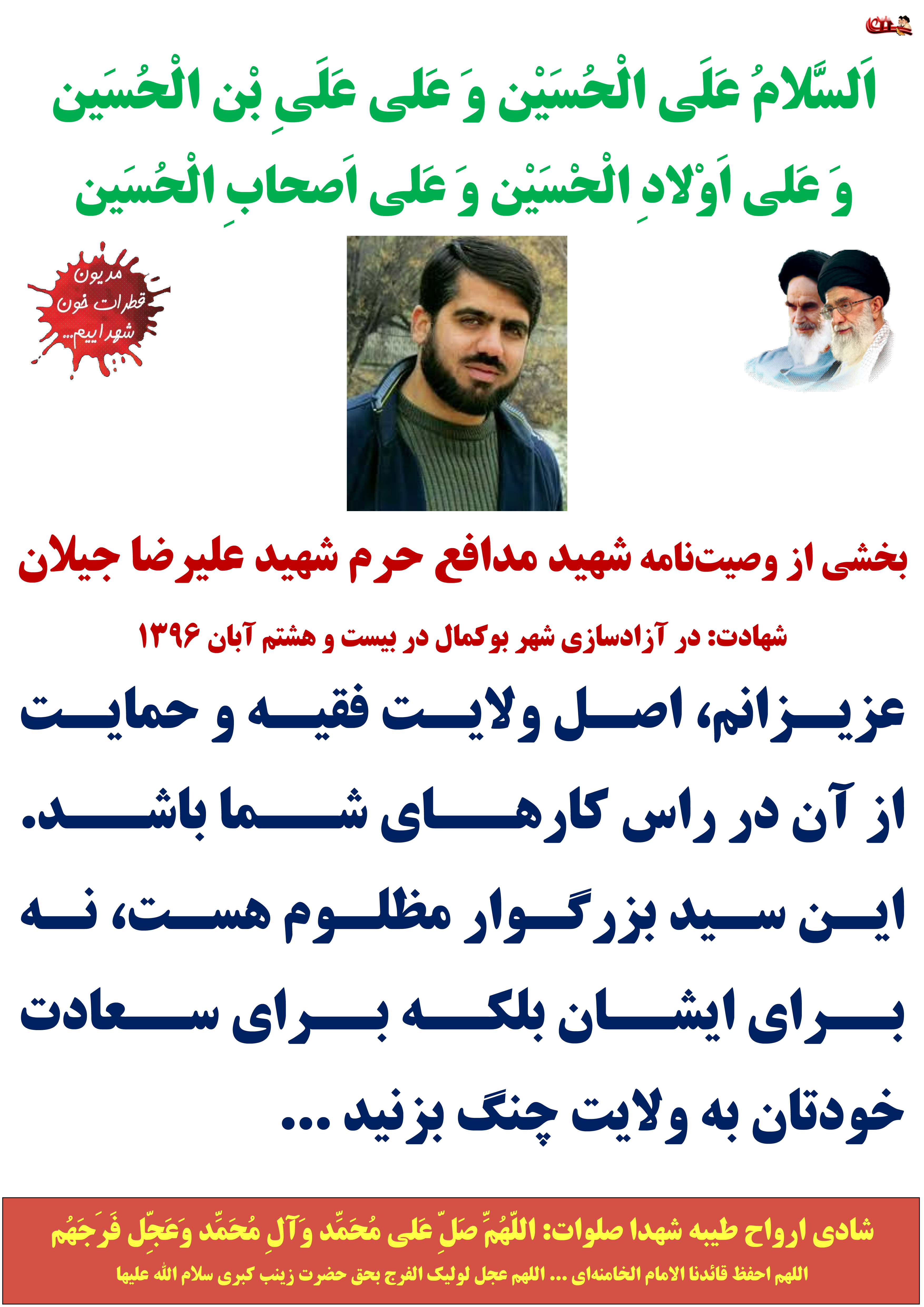 بخشی از وصیتنامه شهید مدافع حرم شهید علیرضا جیلان