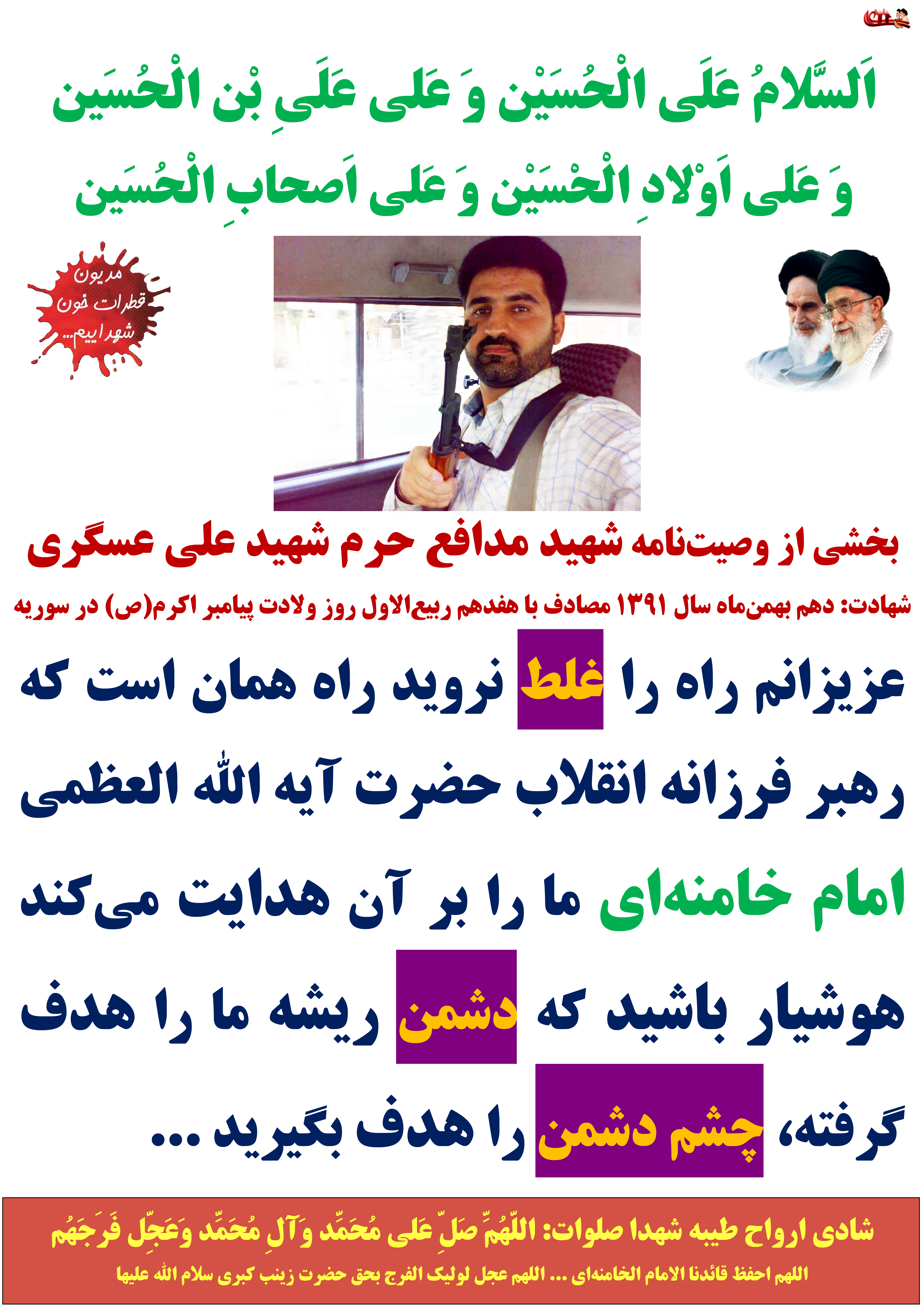 بخشی از وصیتنامه شهید مدافع حرم شهید علی عسگری