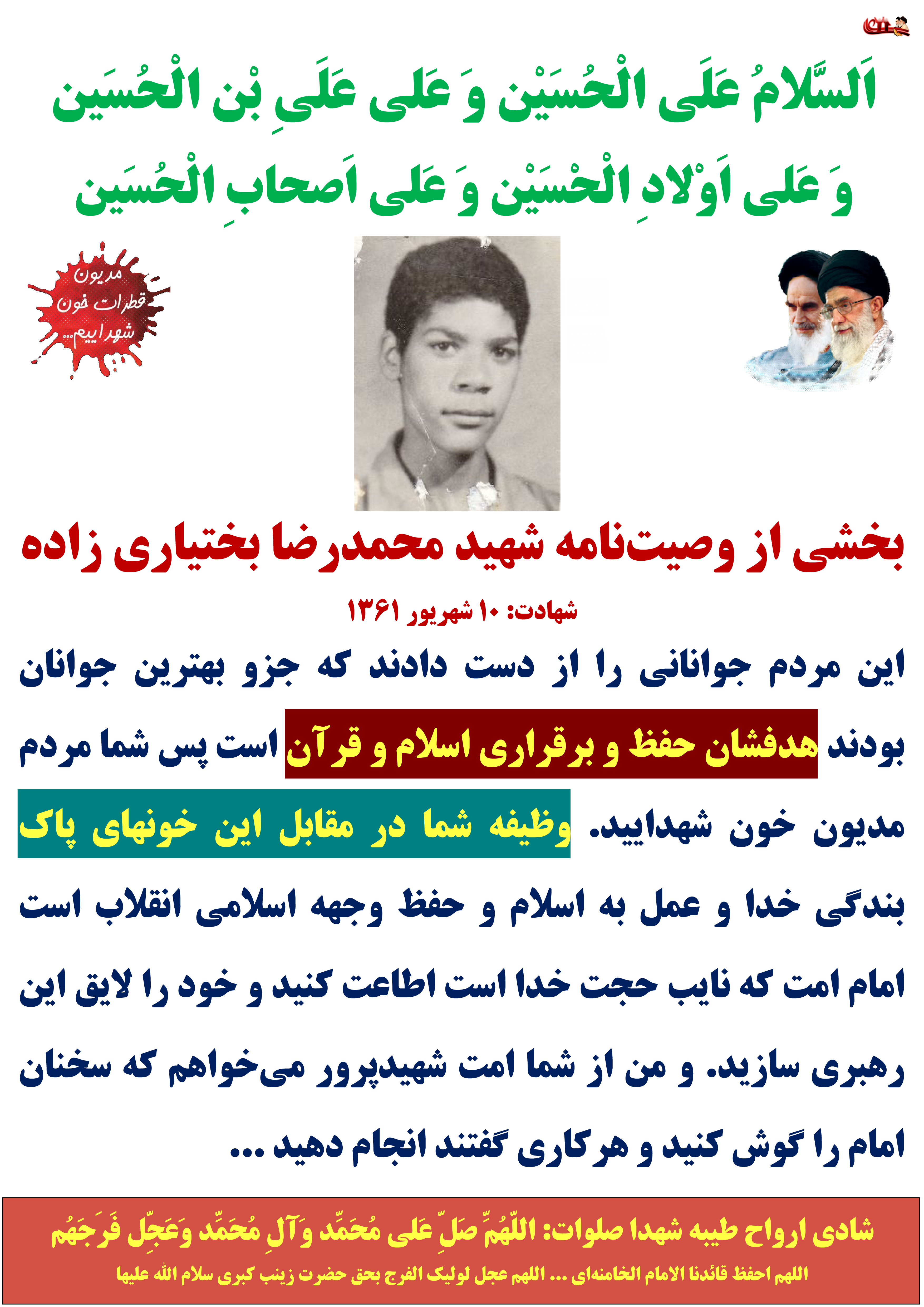 بخشی از وصیتنامه شهید محمدرضا بختیاری زاده